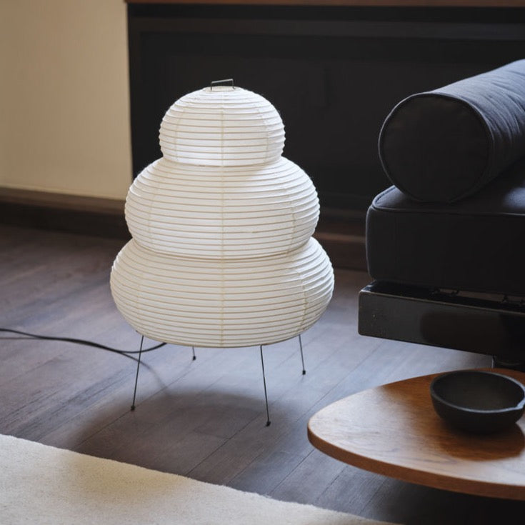The Akari Light Sculptures (1951) by Isamu Noguchi are a series of luminaires, handcrafted from traditional washi paper by Japanese artisans. ‘The harshness of electricity is thus transformed through the magic of paper back to the light of our origin – the sun.’ (Noguchi)
