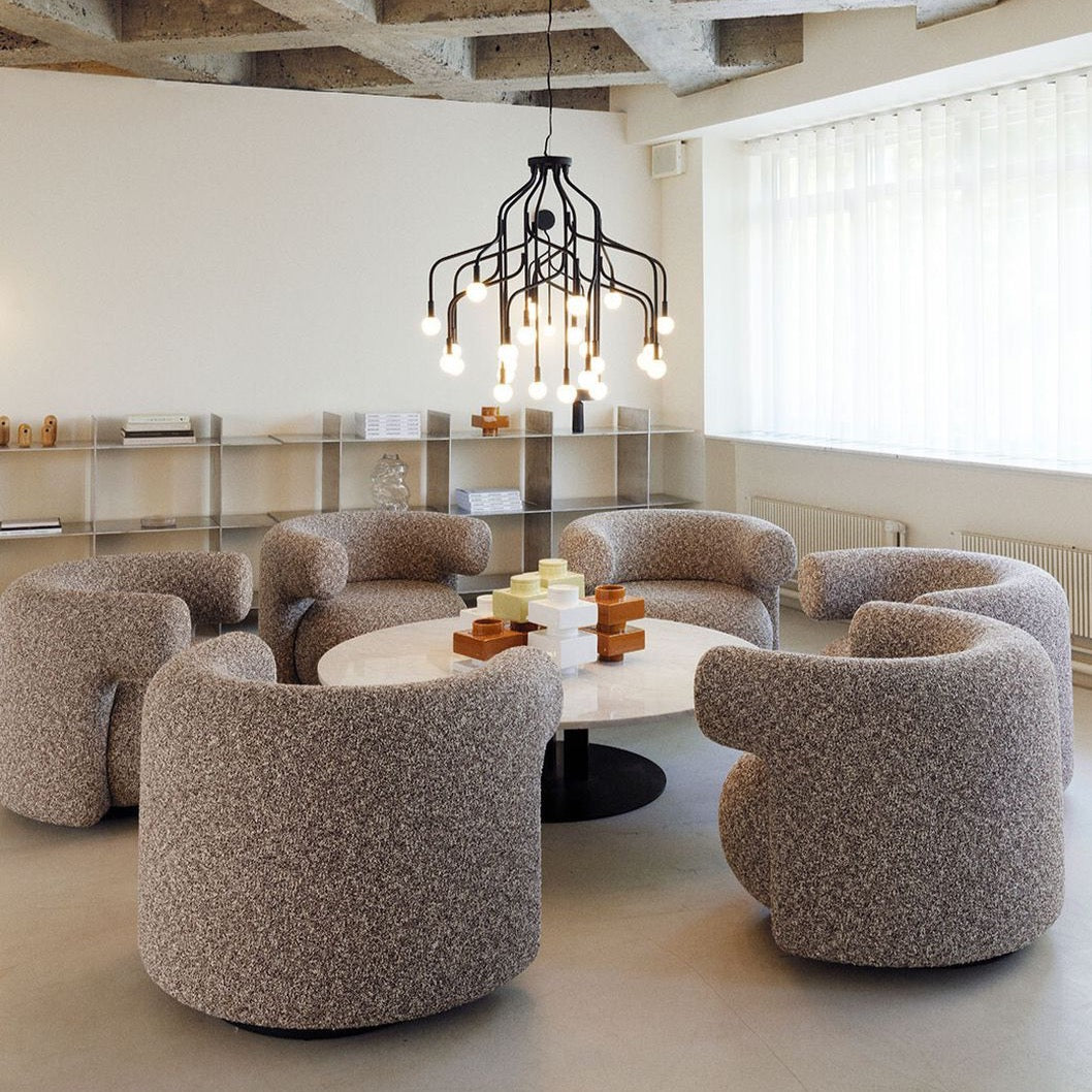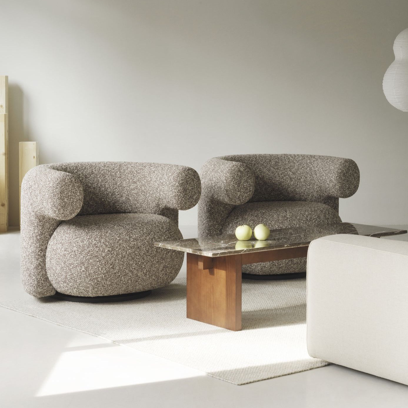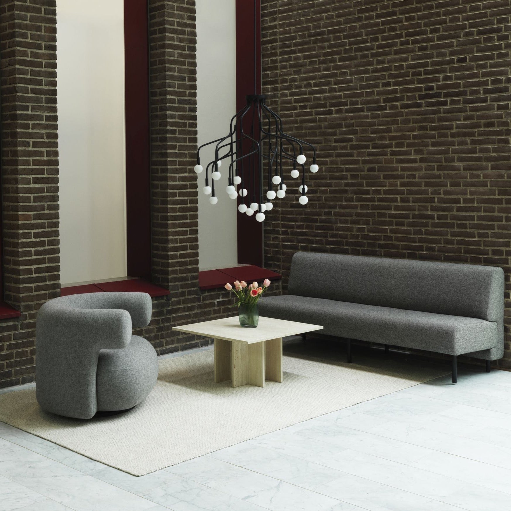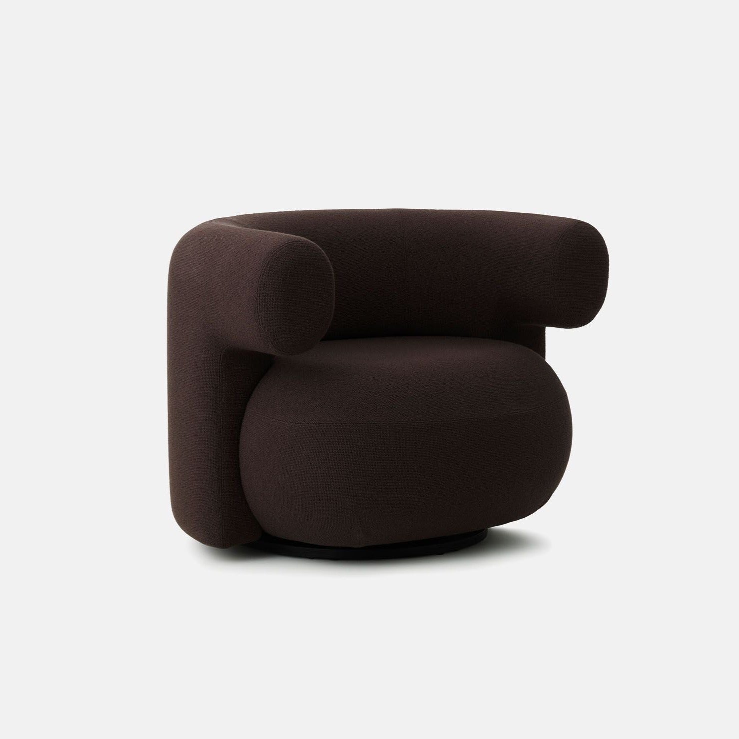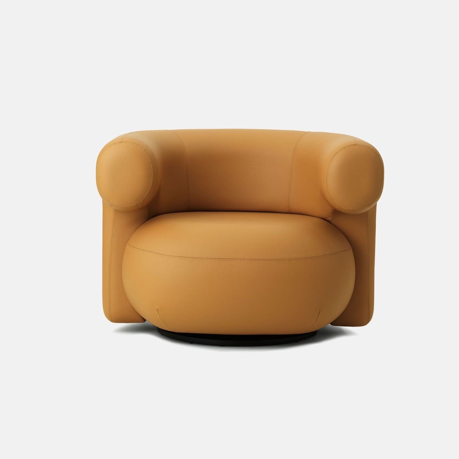 Burra is a sculptural lounge chair with a characteristic soft expression. The rounded seat is fitted with a swivel function with the possibility of an optional return swivel function for additional mobility. Burra is crafted for maximum comfort. Inside, a steel reinforcement structure provides stability and strength, while a combination of elastic bands, hard moulded foam and soft moulded foam ensures soft seating comfort.