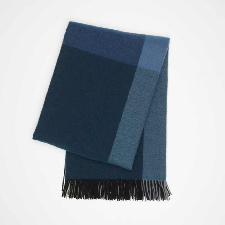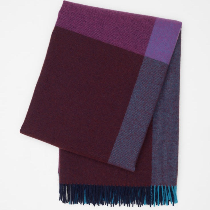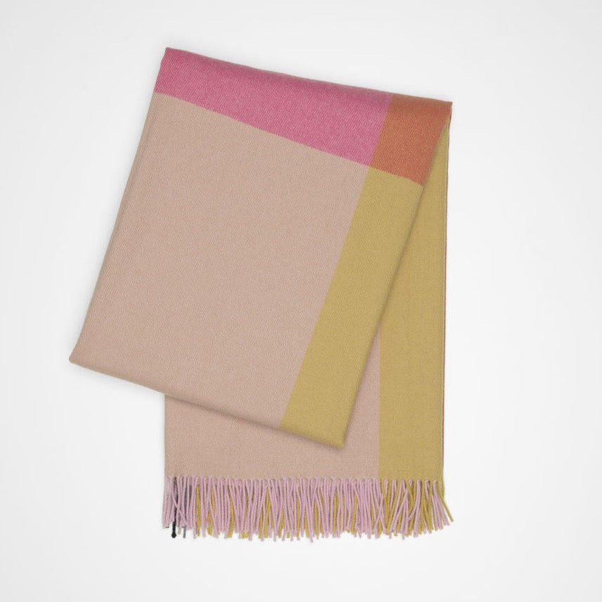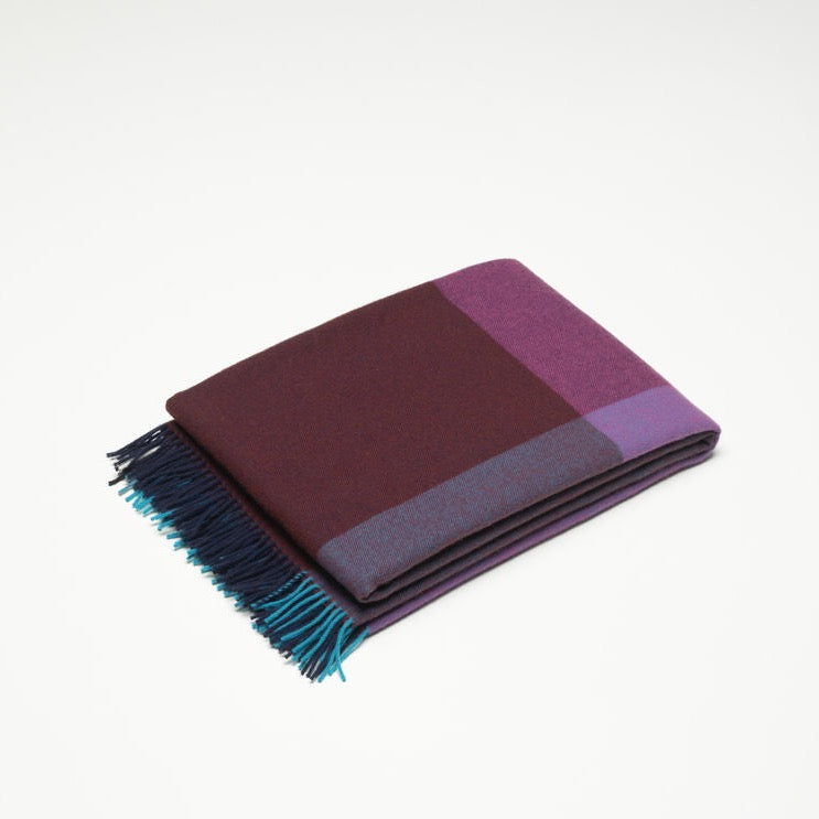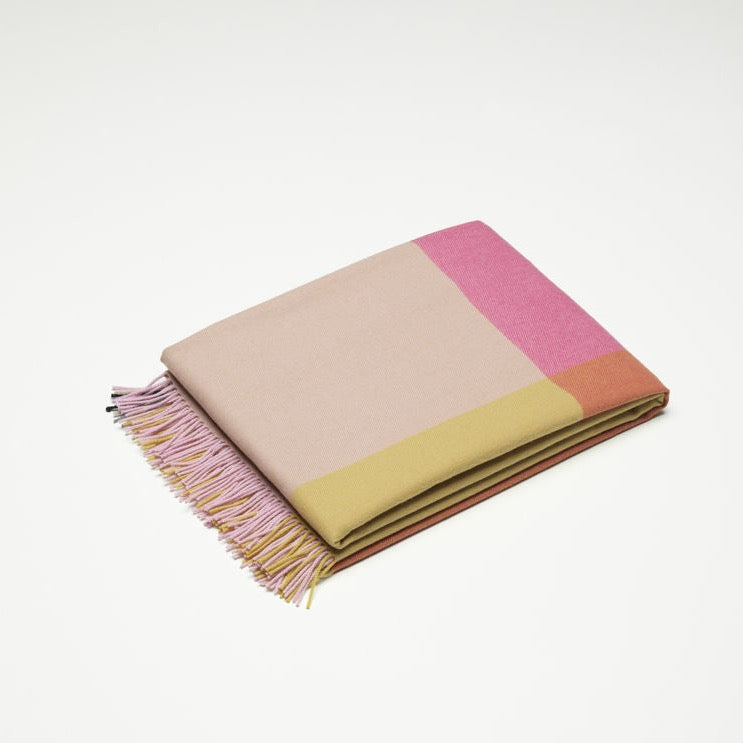 Four contrasting colour blocks form the decorative overall pattern of the Colour Block Blankets by Hella Jongerius. This snug blanket is made of Peruvian highland wool from a hybrid breed of sheep: a cross between a Merino, whose wool is extremely soft, and a Corriedale, which is known for its sturdy fibres.