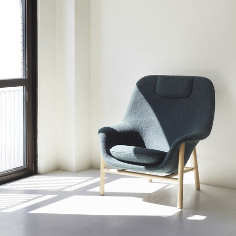 Drape is a lounge chair collection characterized by its sharp precision and soft curves. The upholstery is “draped” around the chair giving an elegant and organic outline, inviting you to take a well-deserved rest.