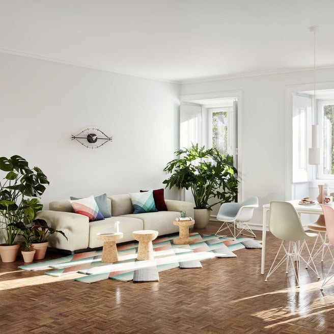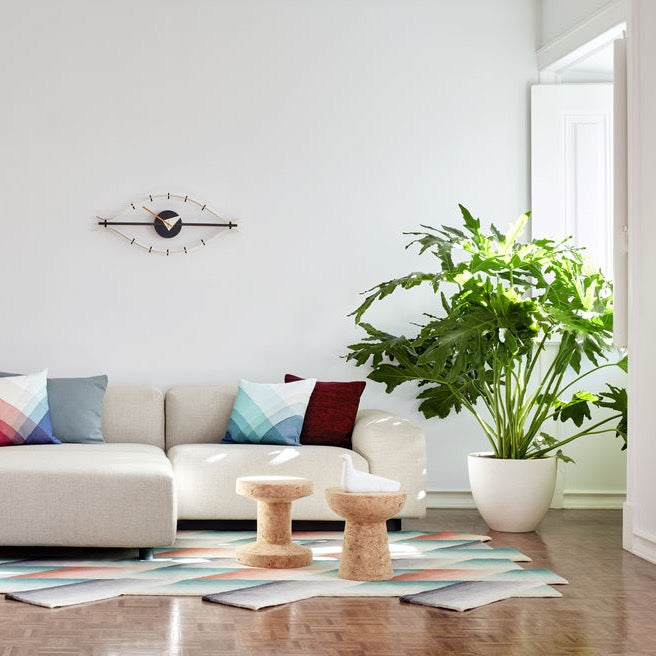 In 1947, the American designer George Nelson was commissioned to create a collection of clocks. Nelson analysed how people used clocks and concluded that they read the time by discerning the relative position of the hands, which made the use of numbers unnecessary. Furthermore, since most people wore wristwatches, he assumed that clocks had become more of a decorative element for interiors.
