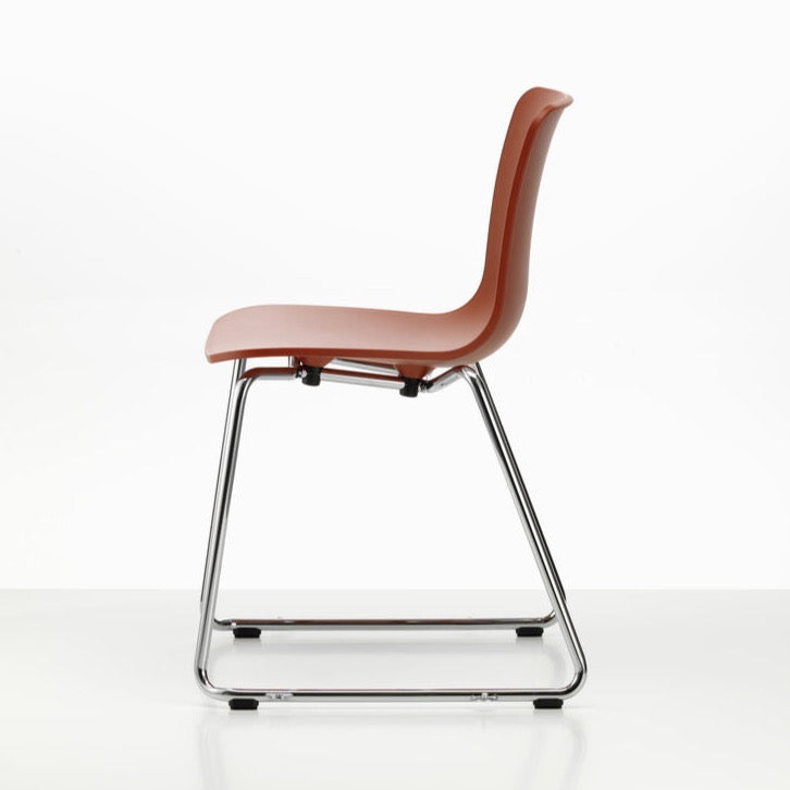 HAL Sledge designed with a sledge base benongs to the comprehensive HAL family of chairs by Jasper Morrison. Its distinctive structure lends the chair excellent stability and unmistakeable character. These chairs are stackable to 6 on the floor, up to 13 on a trolley.
