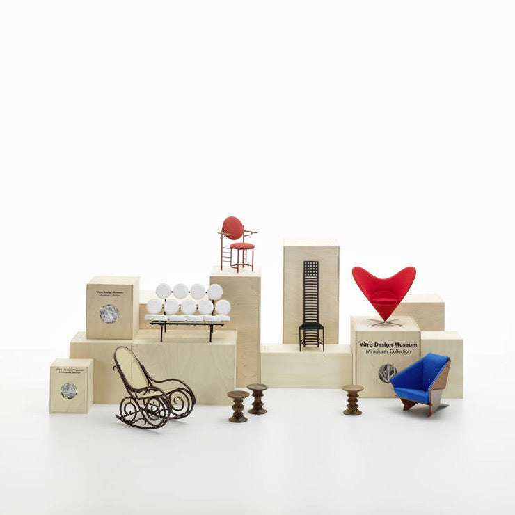 For over two decades, the Vitra Design Museum has been making miniature replicas of milestones in furniture design from its collection, encapsulating the entire history of industrial furniture design. Exactly one sixth the size of the historical originals, the chairs are all true to scale and precisely recreate the smallest details of construction, material and colours, making the miniatures a popular collector's item as well as ideal illustrative material for universities, design schools and architects.