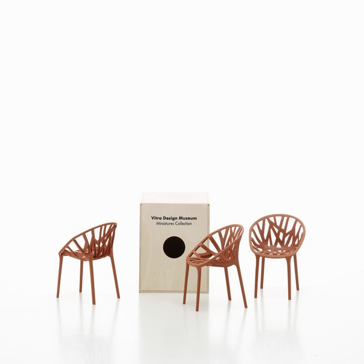 For over two decades, the Vitra Design Museum has been making miniature replicas of milestones in furniture design from its collection, encapsulating the entire history of industrial furniture design. Exactly one sixth the size of the historical originals, the chairs are all true to scale and precisely recreate the smallest details of construction, material and colours, making the miniatures a popular collector's item as well as ideal illustrative material for universities, design schools and architects.