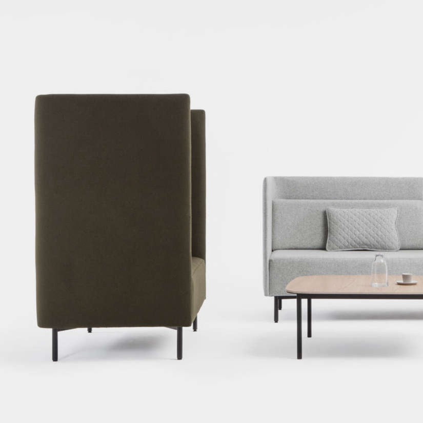 The sofas’ fully upholstered structure stands tall, featuring high back and sides, and comfortable seating. Ideal for commercial applications, the single, 2 or 3 seater configuration can be arranged together to create semi private meeting spaces within an open environment.