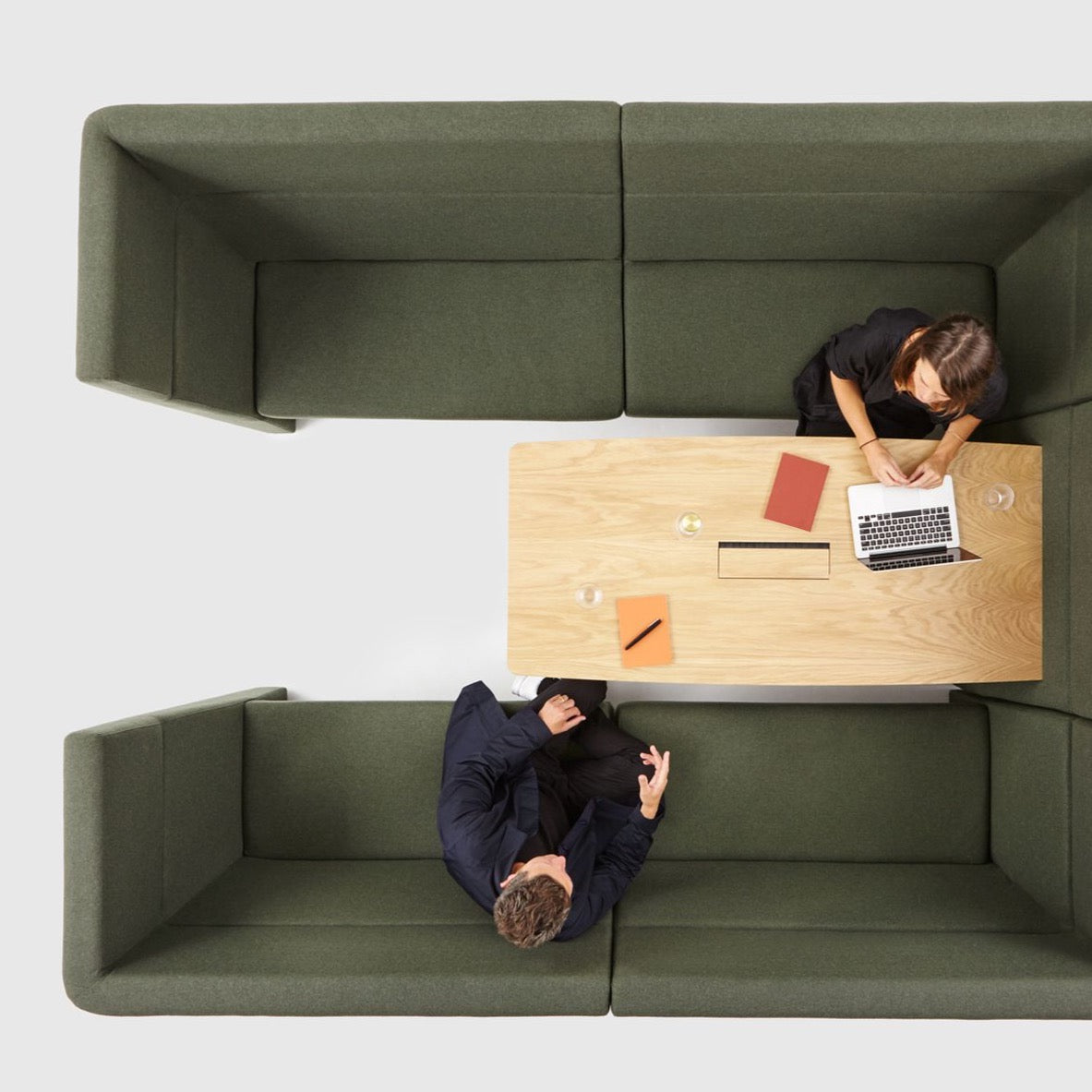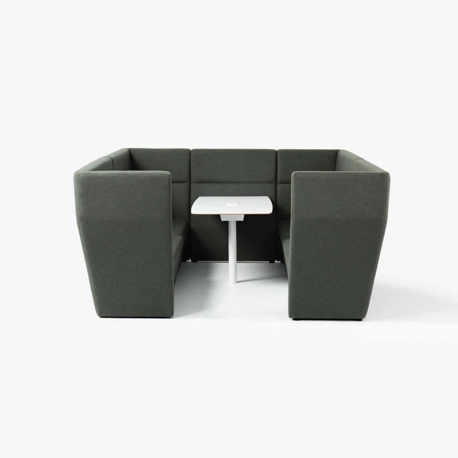 The Paramount Quarters is an enclosed seating arrangement that offers a semi-private meeting space in an open plan working environment. With multiple size options, the Paramount Quarters can accommodate 2 - 8 people depending on the configuration. This system comes with an optional built-in table in either laminate or oak veneer, as well as soft wiring components.