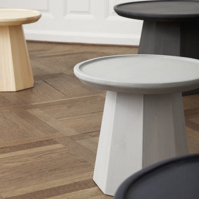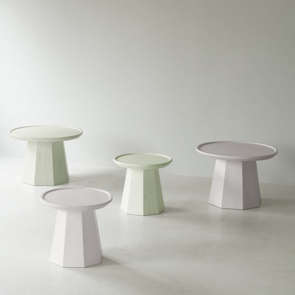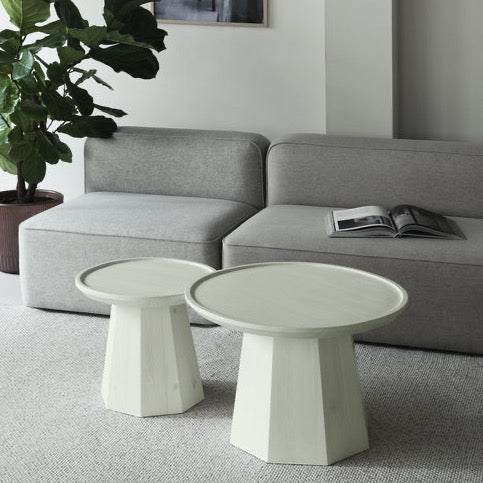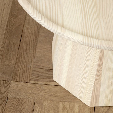 Pine is a collection of two small tables in pinewood. The combination of the sculptural octagonal foot and the light tabletop makes a characerstic design. Use the larger version as a coffee table or combine it with the smaller table that is elegantly tucked in underneath. All versions are finished with a protective matte varnish.