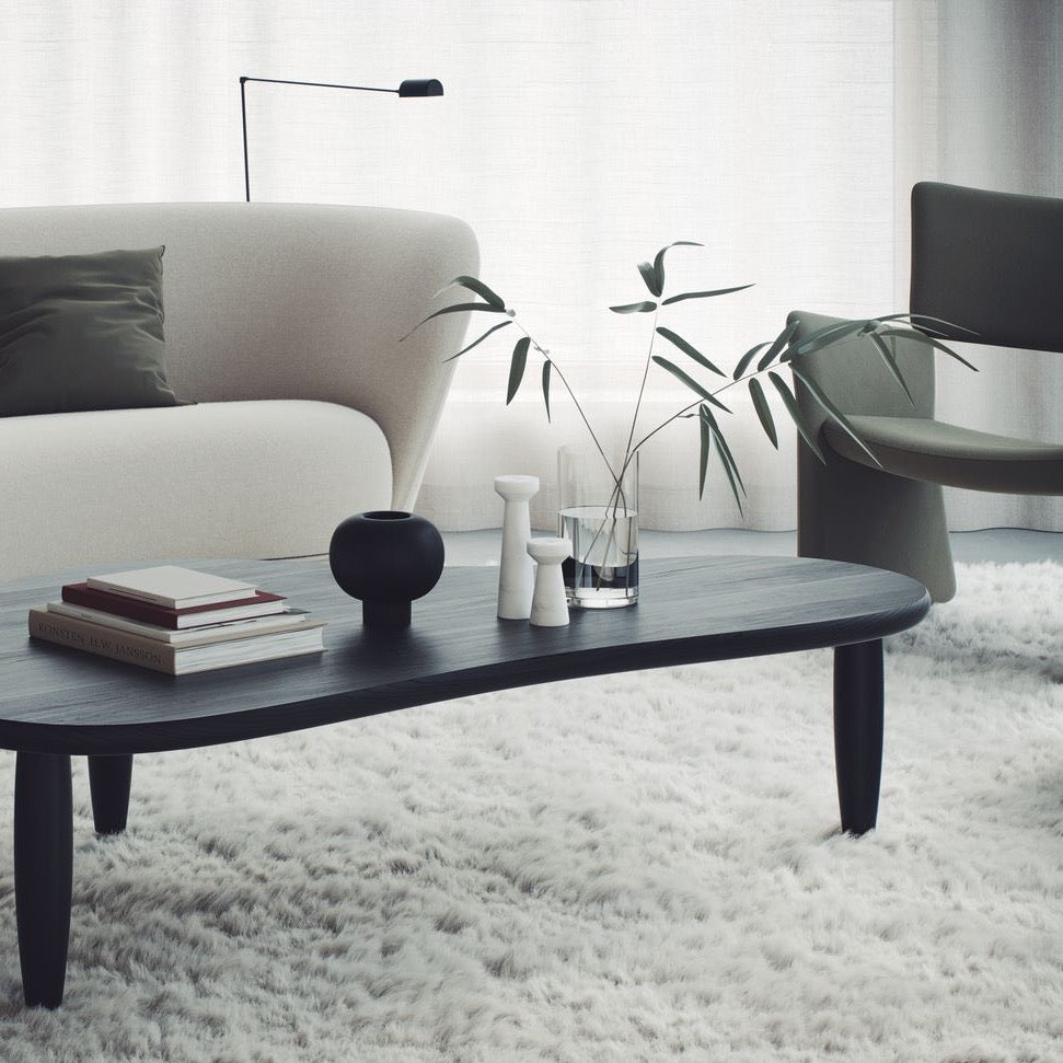As the name suggests, designer Chris Martin drew inspiration from puddles of water when he designed the Puddle Table, giving it an organic and harmonious look and feel. The sofa table in solid wood of oak or black stained ash, is designed generously in size, with a width of 1.6 metres, but still conveys a light, sleek impression.