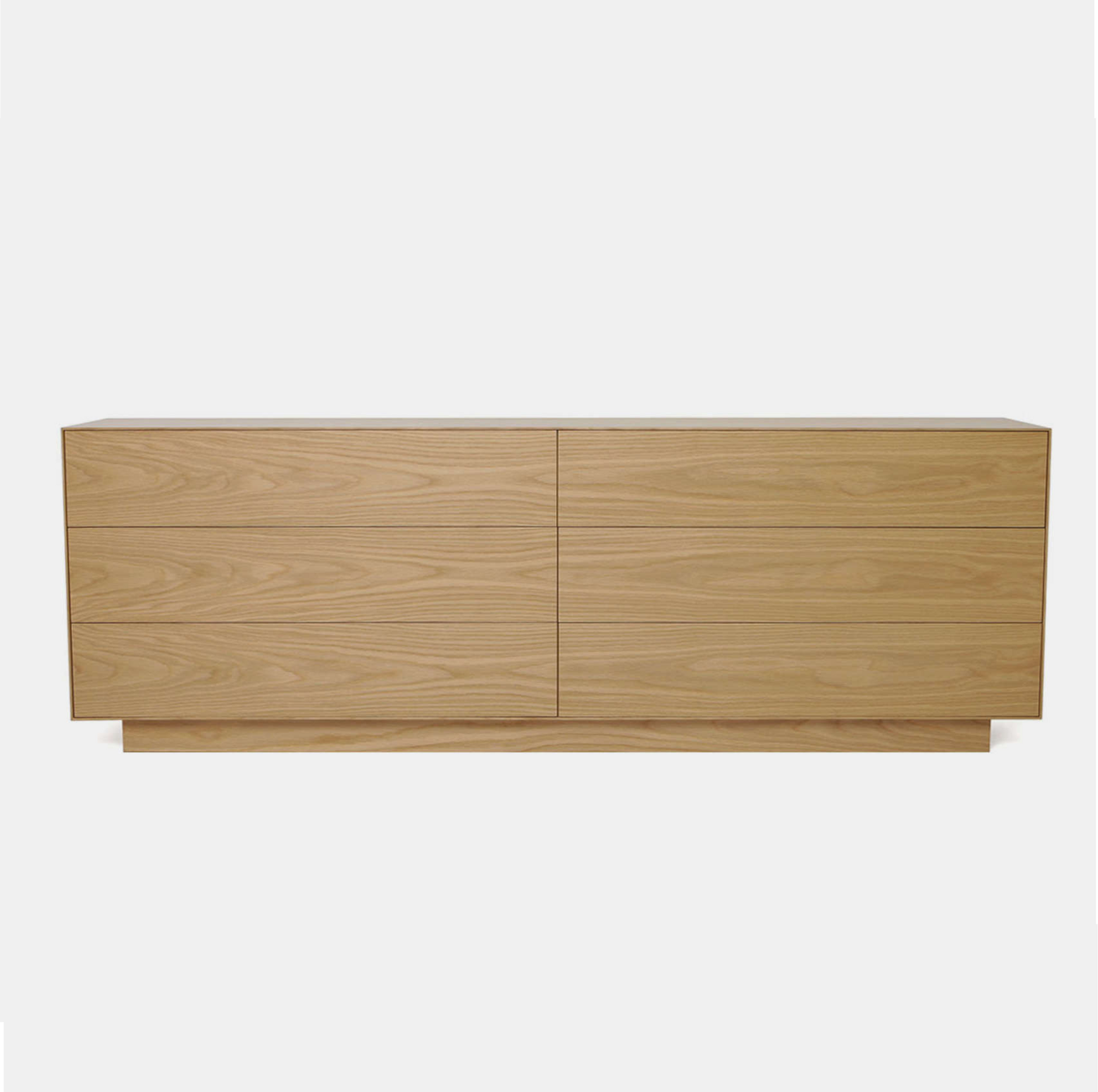 The Seam drawer unit range is available in a number of different sizes including 4 drawer, 6 drawer, 3 cupboard sideboard and bedsides. It has touch pop-out drawers and is available in oak veneer with a range of finishes. Ideal for the living room, bedroom or hallway.