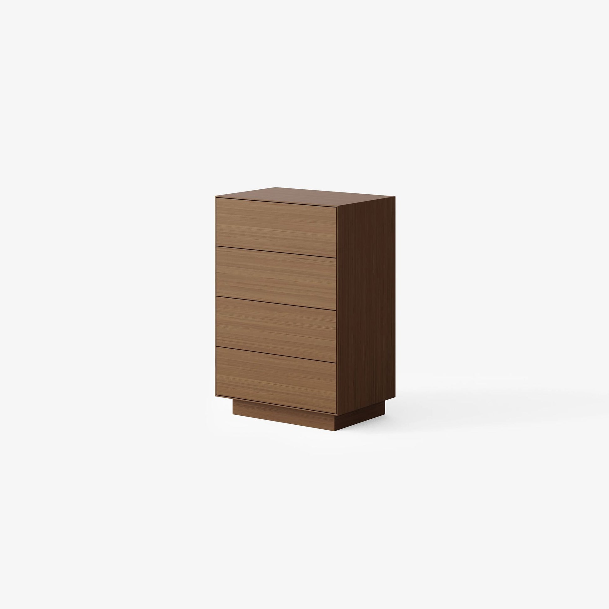 The Seam Unit is available in a 4 drawer tallboy configuration. It has touch pop-out drawers and is available in oak veneer with a range of finishes. Ideal for the living room, bedroom or hallway.