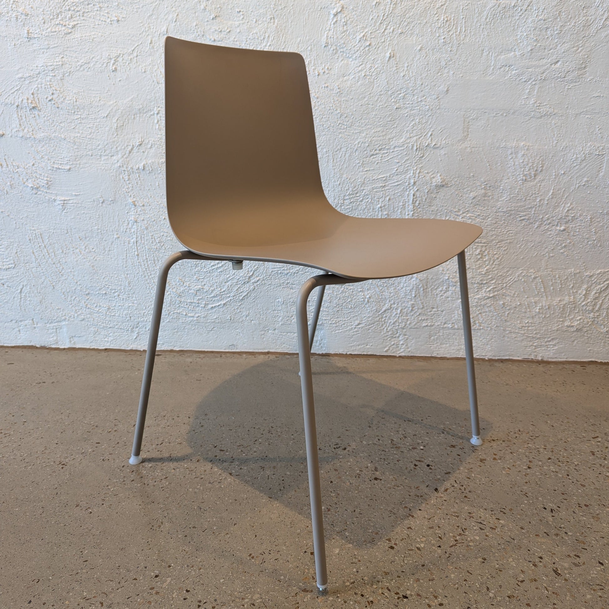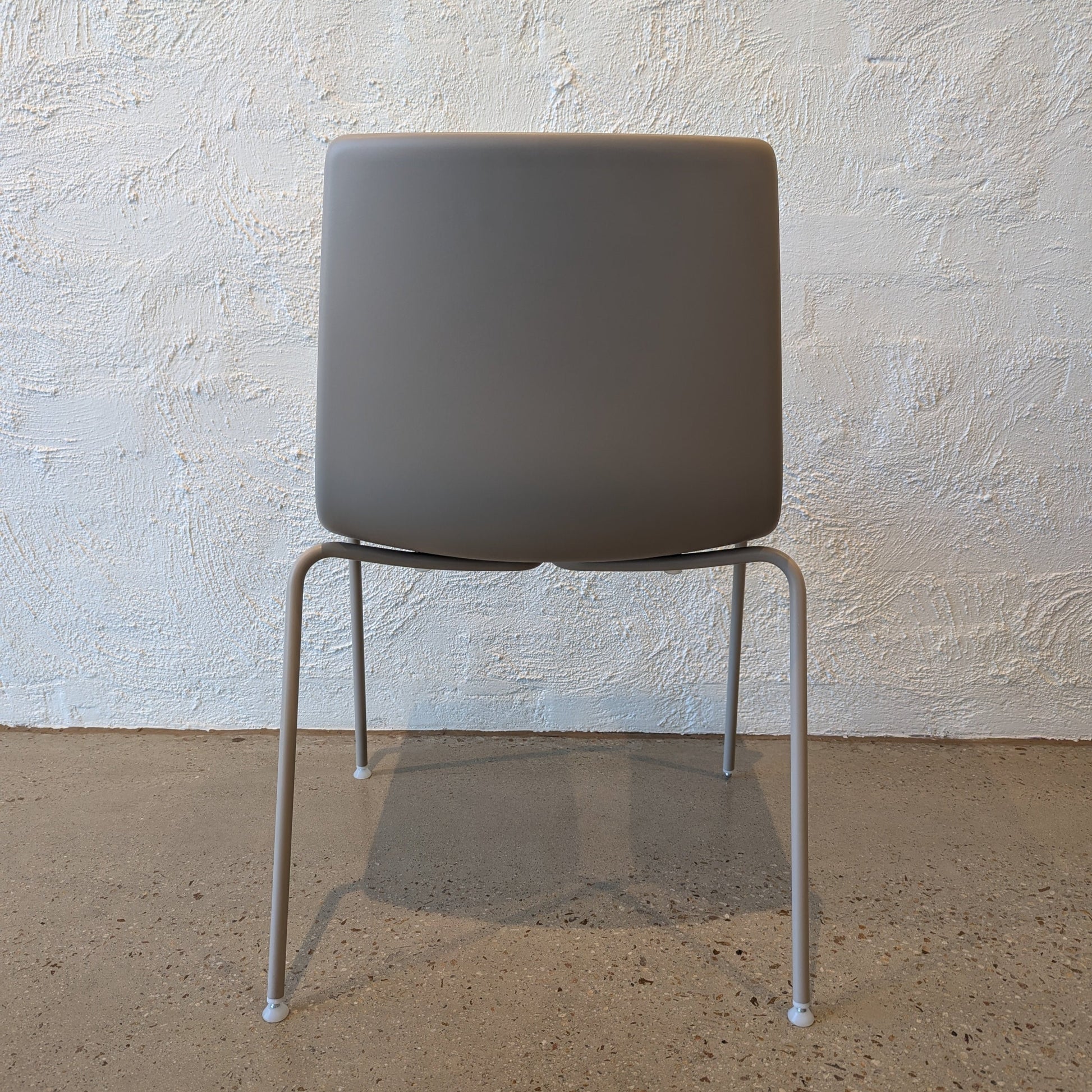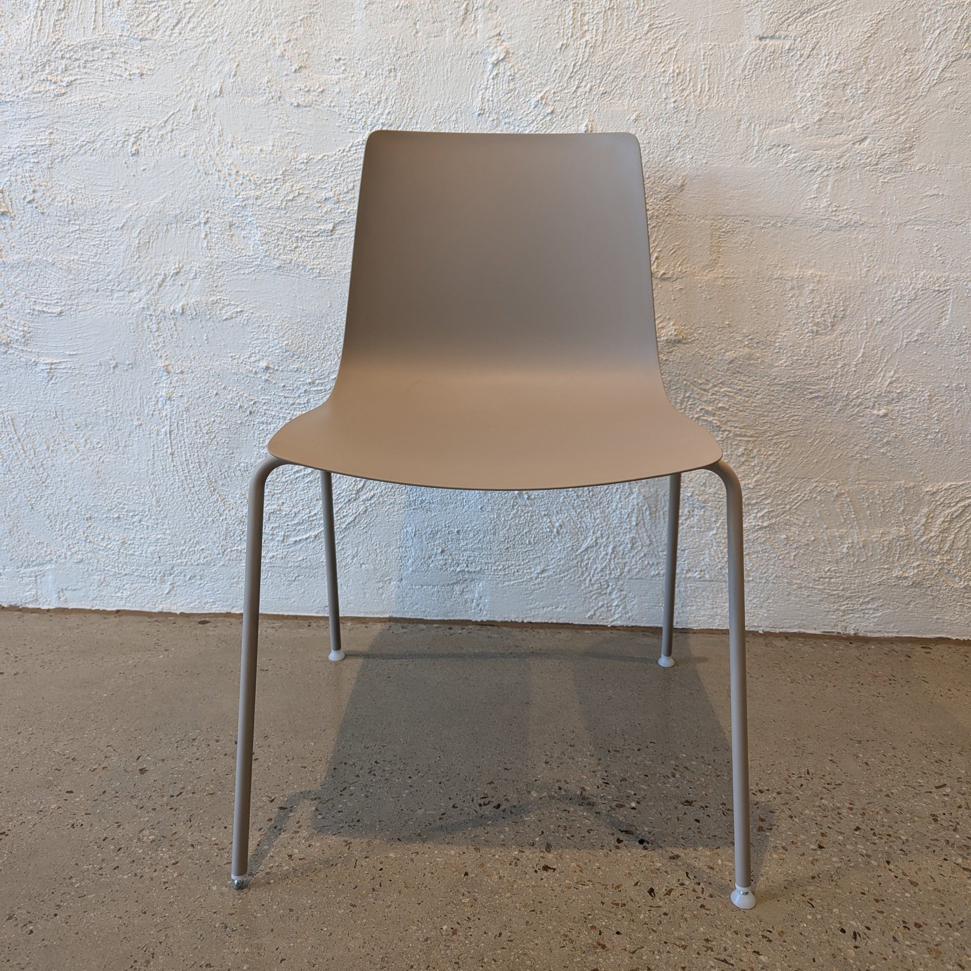Finishes: grey poly seat with stove enamelled steel four leg base