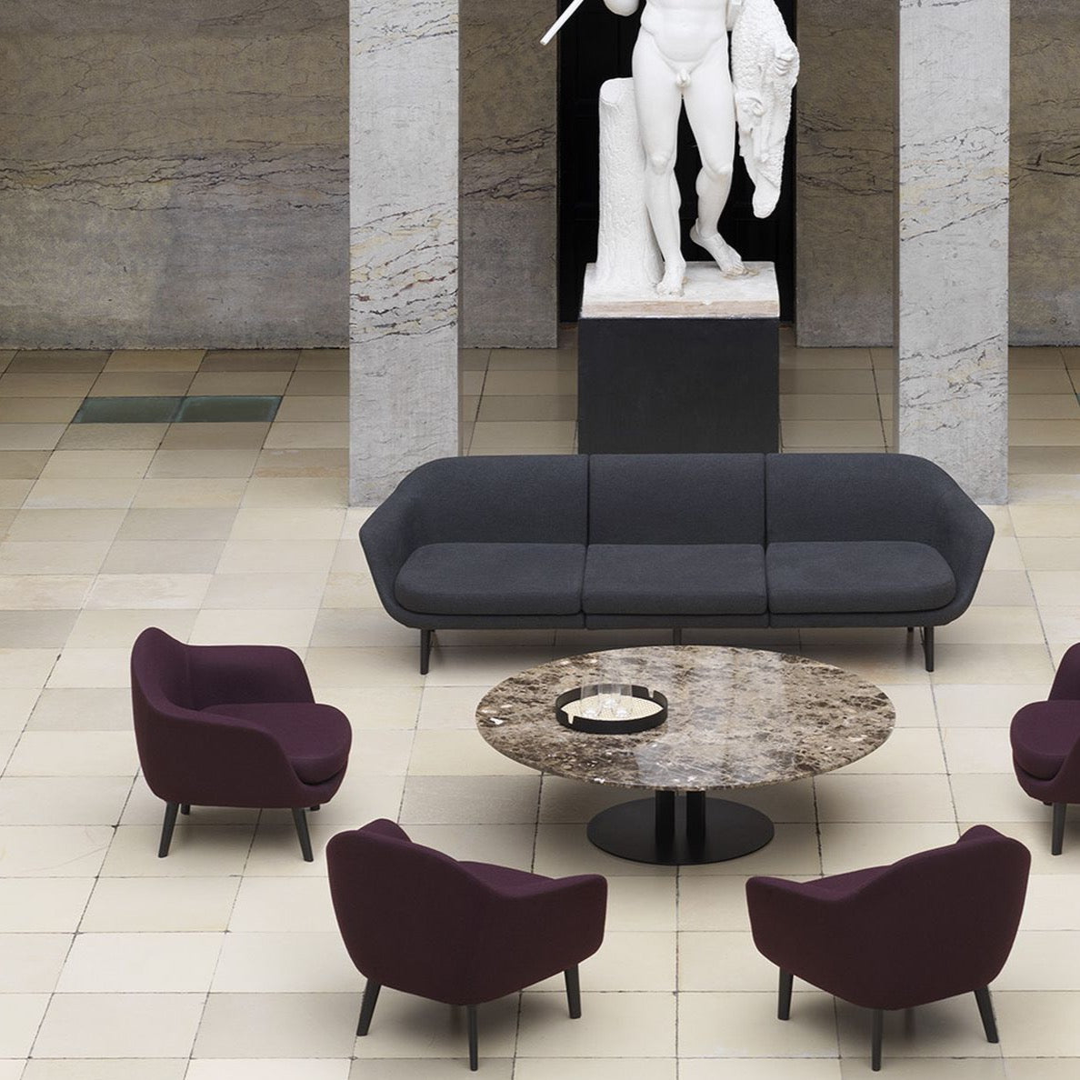 The Sum sofa can be built up from eight different modules, angled or straight, with open or closed sides. Add up the parts you want into a customised sofa design and create welcoming and vibrant lounge areas, supplemented by the series matching armchair.