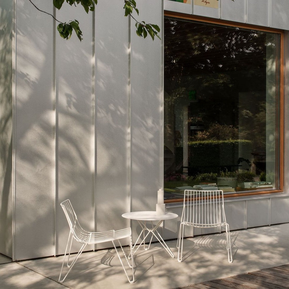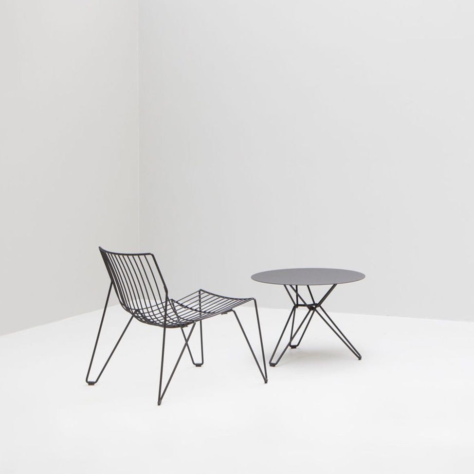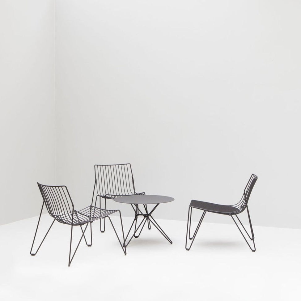 The award-winning Tio collection is made of electroplated steel wire with a polyester powder coat. The clean, transparent and stackable design makes Tio blend well with a large variety of architectural styles. Available in many colors and suitable for indoor and outdoor use, Tio Tables come in four heights and offer a large selection of table tops in varying colours, materials and sizes.